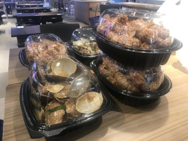 ▲各类烹制好的海鲜,是堂食餐桌上最常见的风景