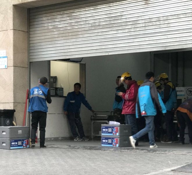 ▲下午五点多,栅栏门拉起,配送人员开始纷纷出动