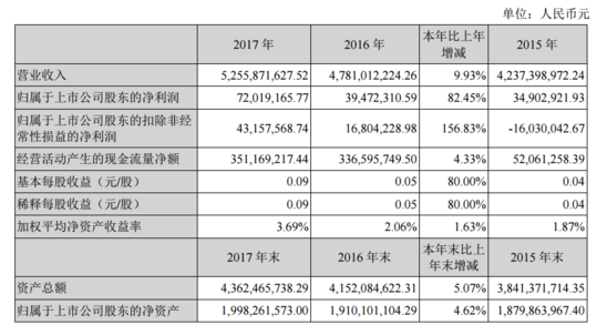 公司称,经本次董事会审议通过的普通股利润分配预案为:以2017年末总股本812,652,098股为基数,向全体股东每10股派发现金红利0.20元(含税),送红股0 股(含税),不以公积金转增股本。