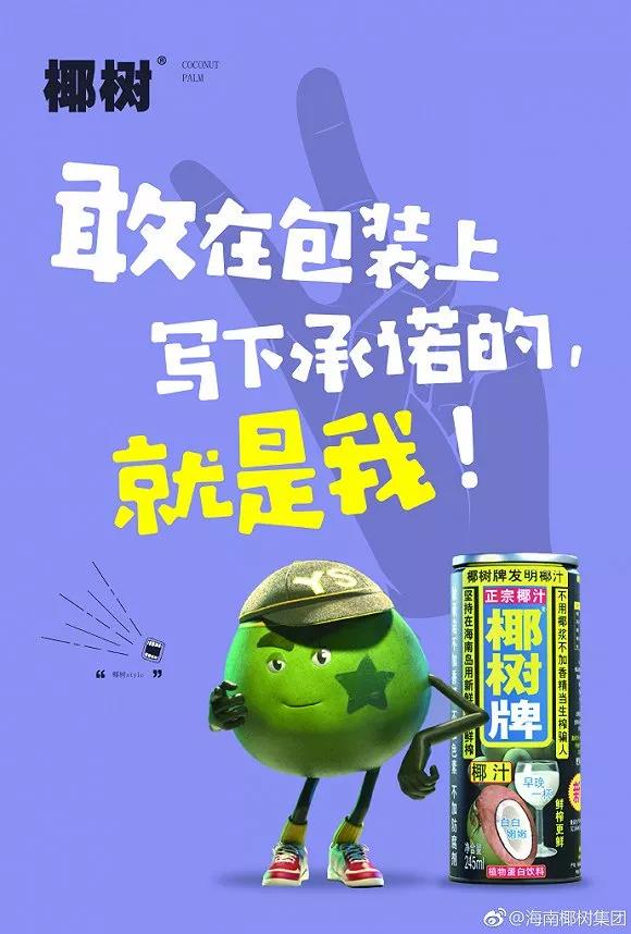 一个戴着鸭舌帽、穿着球鞋的卡通椰子成为了主角,蹦蹦跳跳地唱出了椰树椰汁的广告词:“我曾经红得像花,全球的政要大咖,来到中国找我开趴”“喝椰汁认准椰树,不添加香精色素”……