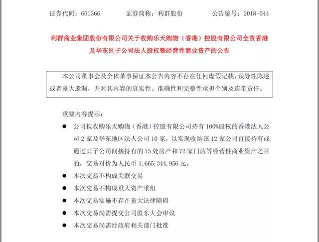 这也导致徐恭藻在此次收购中,坚持要把乐天的两家香港公司收过来。“利群国际化,香港公司特别重要。很多国际商品,一说是大陆公司,不供应。急需香港公司境外采购业务。坚持收购两个香港公司,为后续企业国际化,做基础准备。对利群是重要的转折,非常重要的基础,未来利群的发展会加速。”