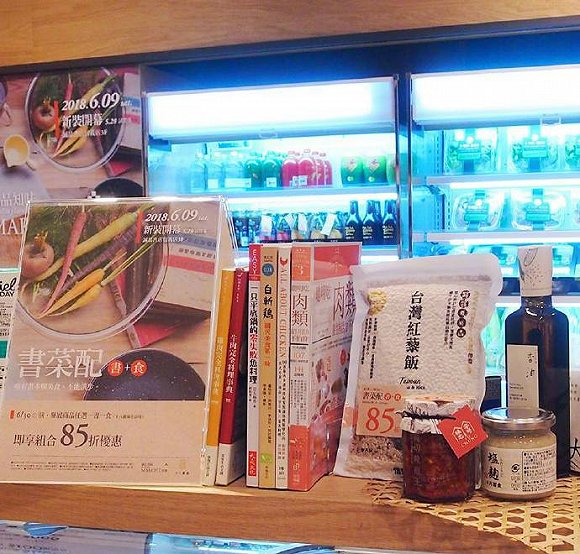 诚品准备了一个“书菜配”的推广活动,生鲜柜中摆着新鲜食材和对应的菜谱,消费者按菜谱购买指定的食材,还能获得优惠。这项活动主要针对那些没有时间好好做菜的上班族和小家庭。