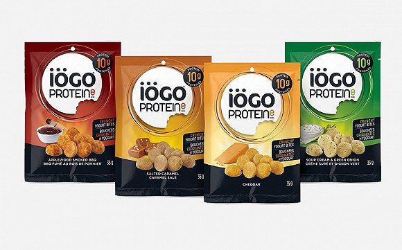 这款咬着吃的酸奶,是由加拿大Agropur公司旗下的i?go品牌推出的世界上第一款脆酸乳酪球,它把液态酸奶混合物通过真空微波脱水,形成像膨化谷物那样的嘎嘣脆口感。奶香四溢,没有膨化食品的长胖烦恼,还保留了酸奶的蛋白质营养。