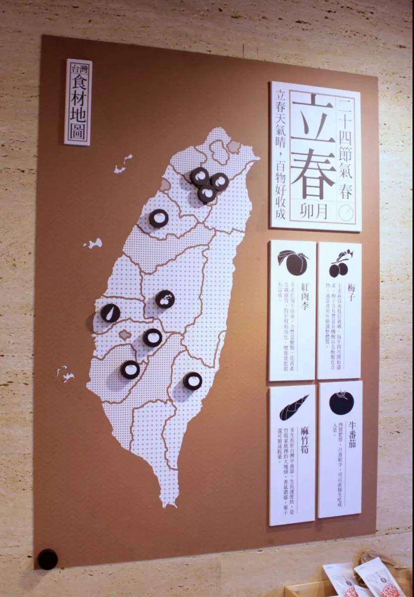 在市集的另一边,还有一小块食材地图区域,挂着一幅小展板,上面写着24节气呷对时(台语:吃对时间)。