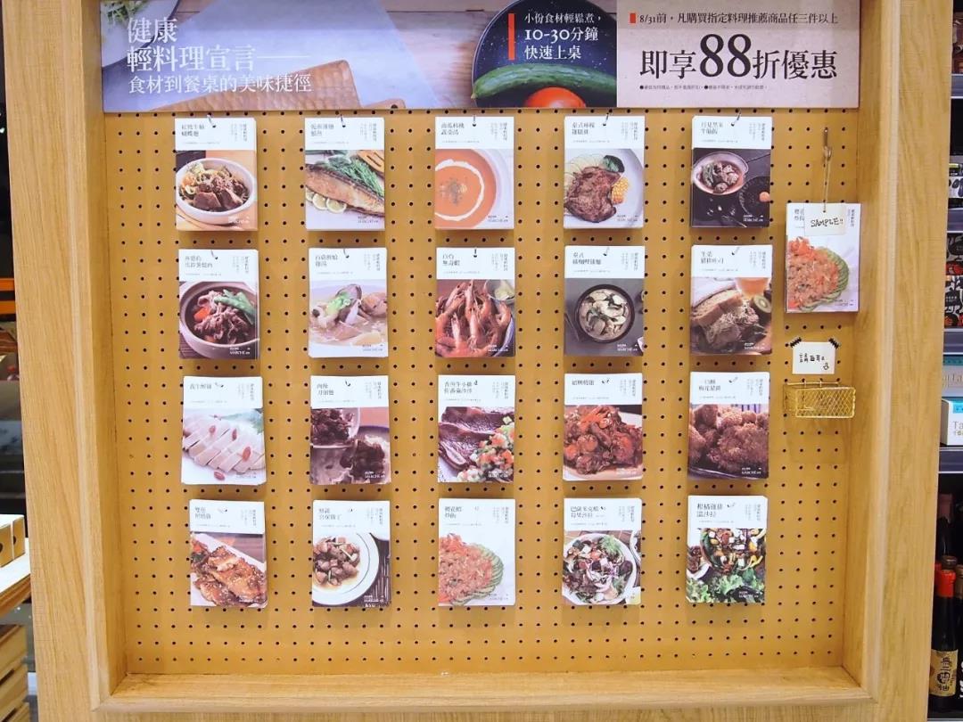 另一侧的墙上则对应写着“食谱计划”,据说他们每季度会在这里免费提供20道料理食谱,根据时间的长短和难易度分为10、15、30分钟和专业料理。