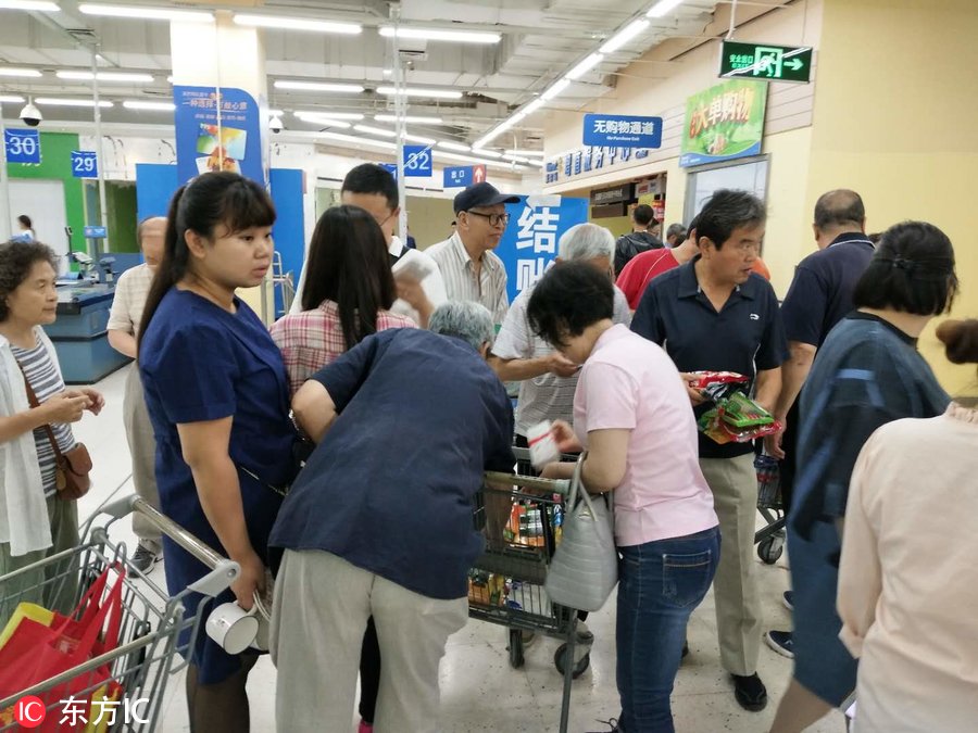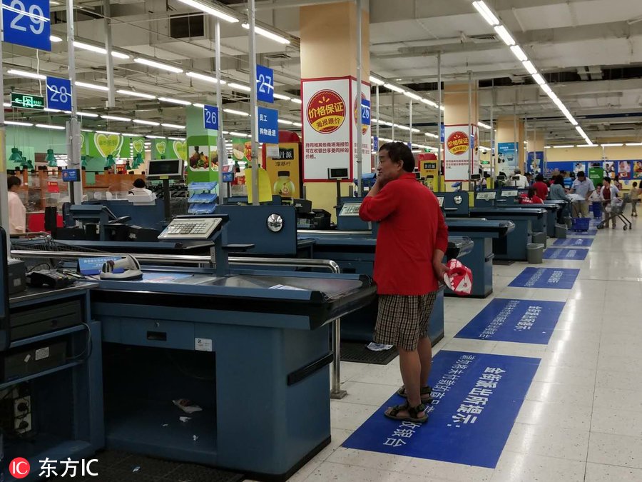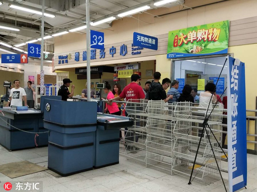 2018年6月10日,天津市和平区,天津沃尔玛和平路分店在超市门口发布告示称12日将停业。超市虽然还在营业,但是只剩少部分处理商品集中售卖,所有货架基本上空荡荡的。