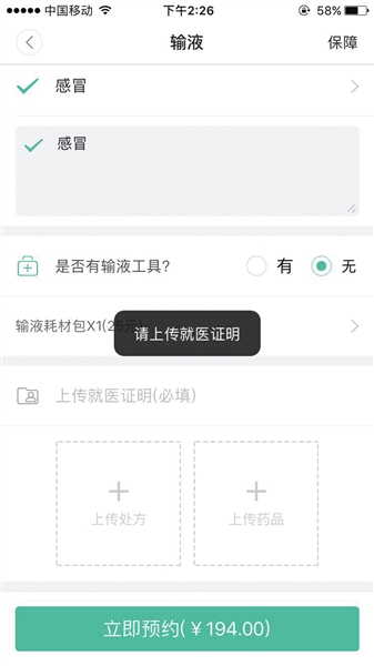 虽然这家公司不是西安公司,但是它的业务已经进入西安,似乎是从西安爆红的。打开APP后,可以看到有护士上门,问诊,健康体检,药店在线。进一步点击,发现问诊部分是和春雨医生合作提供的,健康体检是和爱康国宾合作的,药店在线无法接入,点击护士上门,可以看到可以提供包括输液、打针、换药的18种上门服务。那么看来护士上门服务才是这个APP的核心业务。