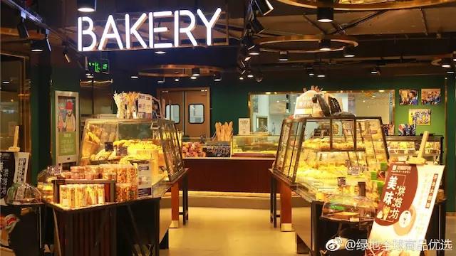 烘焙教室以外,它的烘焙零售区域也比较大,直接靠着收银区。这里的商品包括一些时下比较流行的欧包,看得出绿地是想让它和外部独立的烘焙品牌竞争。