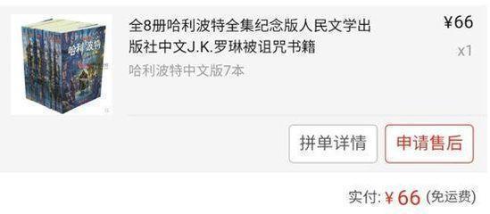 据“拼多多”手机客户端公布的销售数据(平台公布的“已拼”数量)统计,截至2018年7月27日,“拼多多”平台共低价销售《红星照耀中国》10万册以上,《长征》5万册以上,“哈利·波特”系列5万册以上,人文社版古典文学“四大名著”5千套以上。