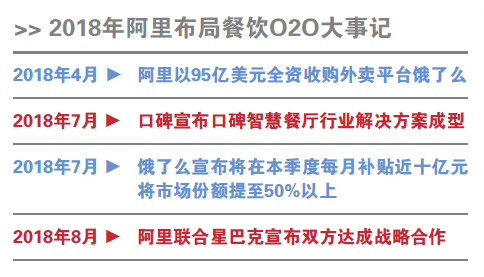 也就在美团点评招股说明书公开后不久,7月18日,阿里旗下本地生活服务平台口碑宣布,口碑的新餐饮战略经过半年的探索,已经形成了口碑智慧餐厅这样成型的行业解决方案,并将用新零售思维帮助餐饮商家升级转型。这也是许久未有动静的口碑时隔近一年后再度面向餐饮B端吸引流量,口碑发布会的举办也被很多业内人士解读为口碑将着力对标美团点评除外卖以外的餐饮业务。紧接着,7月24日有消息称,饿了么即将在未来一个季度每月花费1.47亿美元(约合10亿元人民币)用于用户补贴及市场营销,试图将饿了么的市场份额提升至50%以上。饿了么相关负责人也对上述消息予以确认,饿了么用最直接的补贴方式冲击美团外卖的意味已然十分明显。