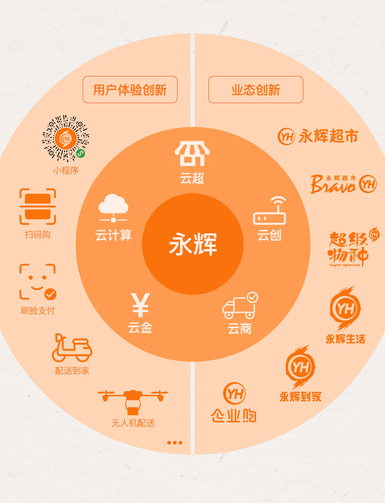 从传统生鲜超市一路走来的永辉,目前已经拥有云超、云创、云商、云金、云计算五大版块布局已然成型,协同发展科技零售。