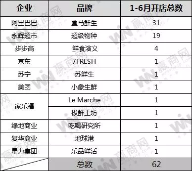 上半年,11家“超市+餐饮”的新零售品牌共开店62家。盒马鲜生、超级物种分别开店31家、19家,远超去年同期开店数量;鲜食演义、7fresh、苏鲜生也均有新门店落地。