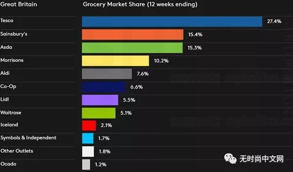 英国杂货市场份额表(数据/图片:Kantar)