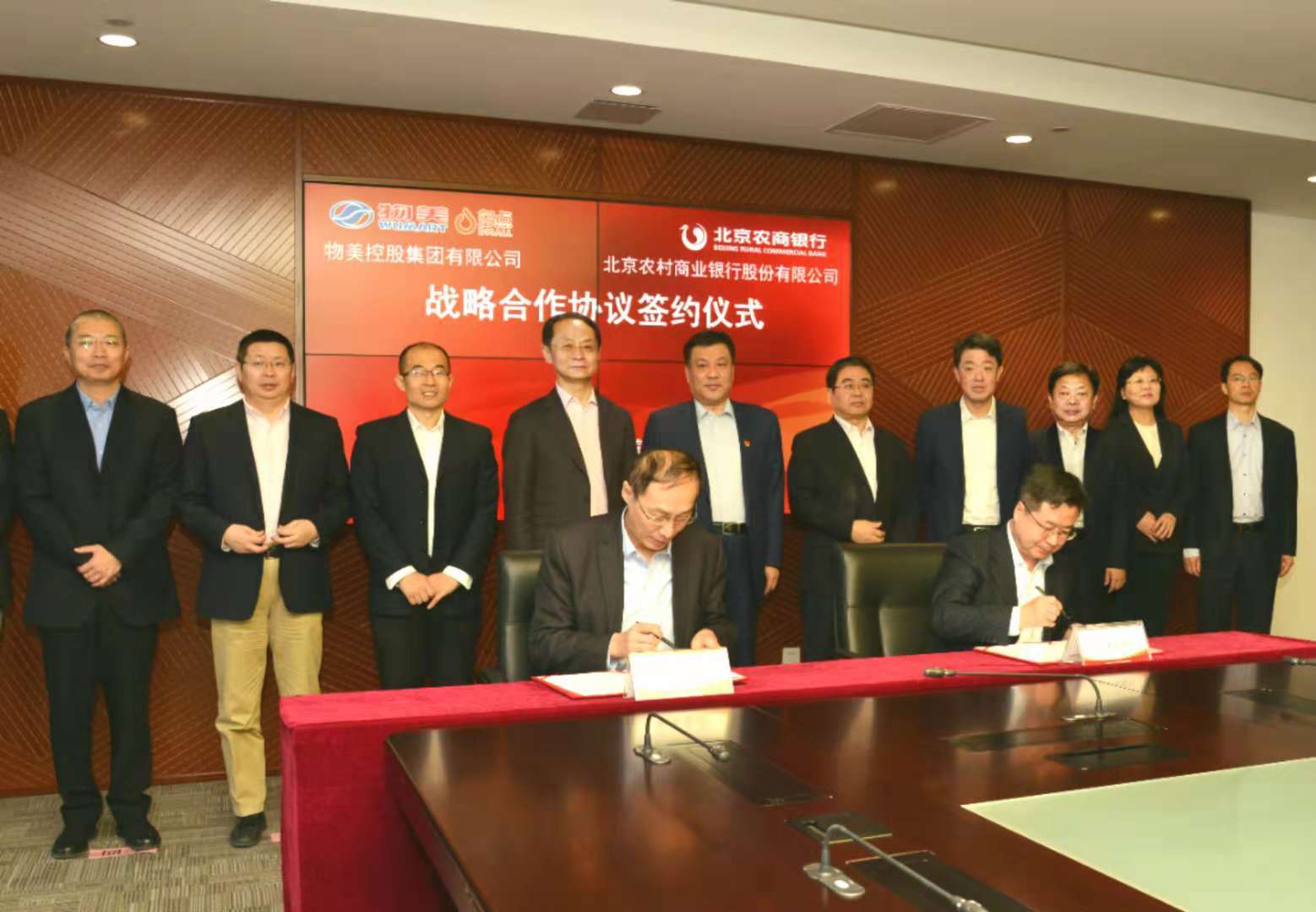 龙商网消息:12月7日,北京农商银行与物美控股集团有限公司(以下简称“物美集团”)在北京农商银行总行签署了《银企全面战略合作协议》,向物美集团提供意向性合作金额100亿元的金融服务,切实加强对民营企业的支持与服务。