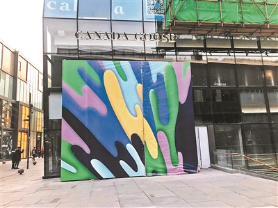 昨天中午,北京青年报记者来到位于北京三里屯太古里的加拿大鹅旗舰店,该店铺大门紧闭,门口上方还未撕掉的标志包装纸在寒风中哗哗作响,紧闭的门口前立有一塑料标志牌,上写到“店铺正在装修 暂缓开业”。透过橱窗,可以清楚地看到店内摆放整齐的服装,店内也并未有工作人员,位于店铺右侧的大型开业广告牌也被一幅五彩绘画覆盖。