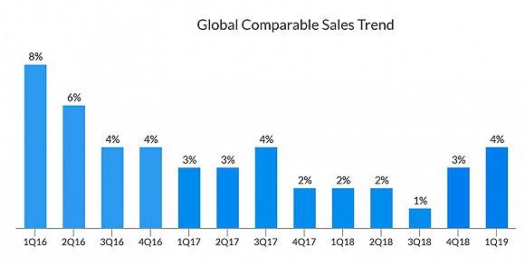 1月24日,星巴克发布了2019财年第一季度(2018年10月1日至2018年12月31日)财报。财报显示,星巴克当季净利润达66.3亿美元,同比增长9%,高于华尔街预测的64.9亿美元;全球及美国本土同店销量均增长4%,超出预测的3.2%,美国地区同店交易量并无明显增幅。店铺数量上,本季星巴克共新开了541家新店,同比增长7%,其中2/3的新店均在美国本土外开设。