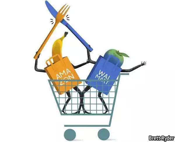 在资本主义不断升级的对决中,销售额全球第一的沃尔玛已经沦为世人眼中的弱者,投资者一直担心这个实体超市帝国会过时。电商在食品行业里的渗透度很低,仅有2%,而整个零售业为9%。购买食品需要更高的信任度,也需要打通线上线下的灵活度。因此一定的实体基础设施是有益的。沃尔玛已经在食品杂货电商更发达的欧洲和亚洲开展业务。过去几年中,沃尔玛花30亿美元收购了电商Jet.com;推出了基于互联网的“再来一单”和“自提折扣”等服务;还收购了物流创业公司Parcel。