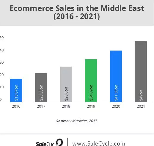 而另一大中国跨境电商重点关注的市场中东,预计2019年的在线零售额也将达到350亿美元。