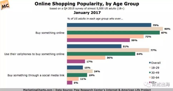 美国在线购物人群年龄分布:18-29岁是最主要的网购人群