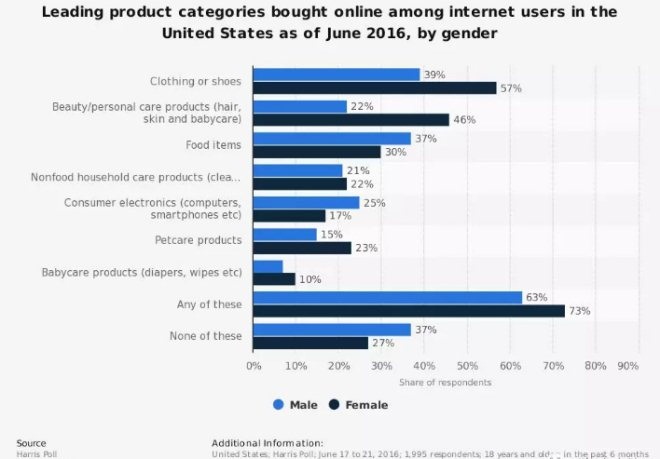 在产品方面,女性消费者则是以时尚,服装,饰品,美妆,宠物等居多。男性消费群体中户外用品,汽车用品,创新的科技产品等等改善型商品也有不错的市场需求。