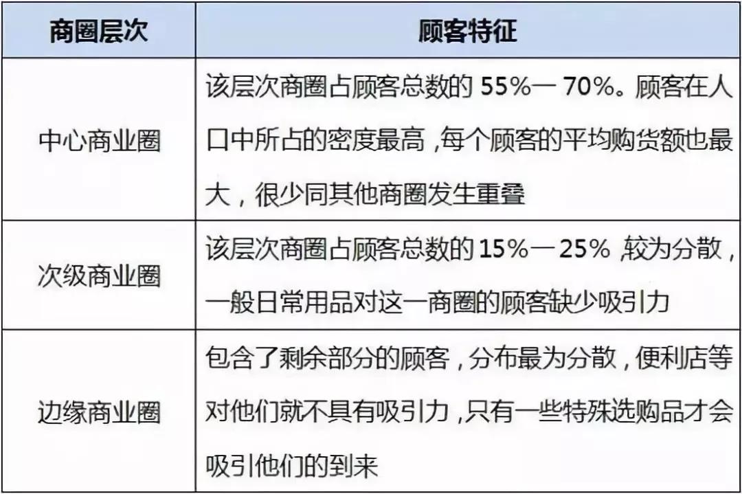 在“零售引力法则”基础上,我们可以根据顾客(消费者)特征进行商圈的划分,并确定相应的业态和开设的地点。(现在中国的中心化电商平台和去中心化的社交平台则提出线上购买数据为依托的选址,这种大数据的选址能够提供一定的辅助,但并不能成为“唯一性”指标,因为线上的购买行为和线下位置的吸引力的差异非常大)