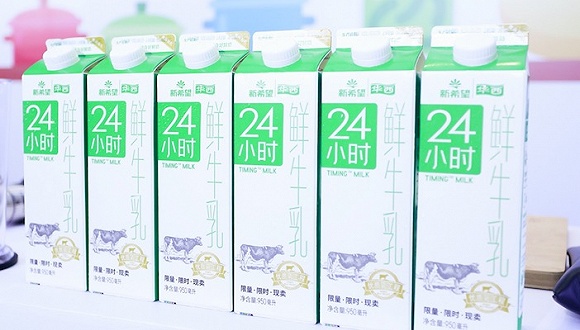 2018年上半年,新乳业低温奶销售额占总销售额的比重已达57.97%。去年8月,新希望还以“新鲜”为卖点,在四川市场上推出了新品“黄金24小时鲜牛乳”,将杀菌温度从82度降低到了72度,并承诺产品从上架到下架将不超过24小时。