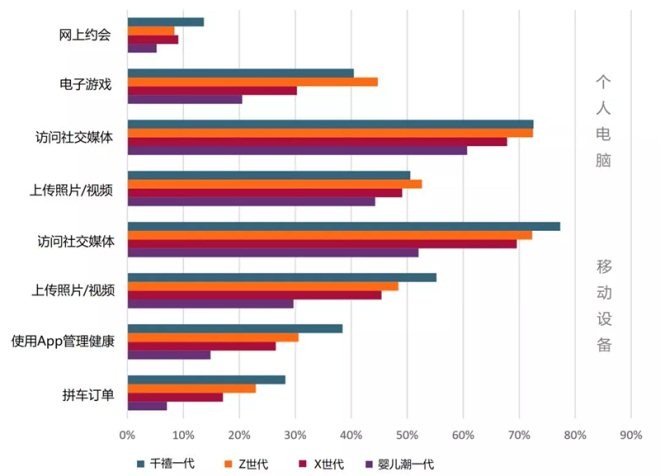 全球每代人口每周线上活动所占比重