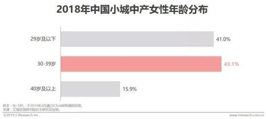 一二线中产女性年龄分布呈倒三角形,是新锐中产的聚集地;小城中产女性则呈橄榄型,中年仍是主力群体。