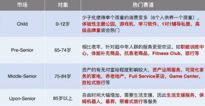 对于同样老龄少子化的背景下的中国,日本就成了一个很好的借鉴。我们来看看,日本自90年代以来,在老龄和少子化市场,都带来了哪些商业机会,产生了哪些热门赛道。