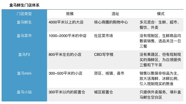 盒马鲜生多元化的门店体系,新的业态几乎全部是小店业态