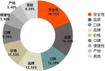 一方面,食品安全越来越成为影响消费者选择的重要因素,艾瑞的调研数据也说明了这一现状。根据艾瑞的消费者调研,当前用户对于生鲜的消费最在意因素排名前三位的分别是安全性、品质和口味,价格则居于品牌之后排在第五位。