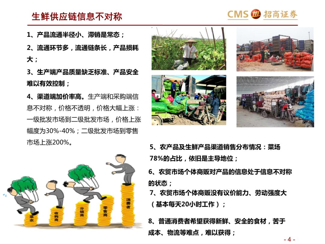 核心摘要: 生鲜供应链存在哪些痛点? 生鲜供应链体系涉及生产、采购、流通以及零售,从农业、物流到零售横跨三个产业,产业对接不均衡、效率不匹配,生鲜从生产到消费成本高、损耗高、加价高。规模采购与生产端分散化矛盾,物流端与零售端的矛盾,生鲜商品...