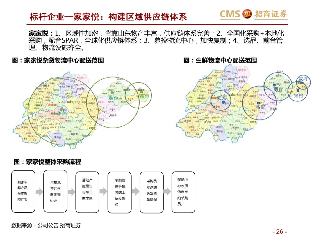 生鲜新零售供应链模式对比:超市VS开放平台。国内现代化的供应链企业主要分为两种模式,现代化的超市和依托互联网的开放类平台B2B,超市全产业链的管控,国内诞生永辉超市和家家悦的超市企业,而外资受制于采购、物流中心等,在生鲜供应链采购上实力不强,以沃尔玛、家乐福和大润发为代表。开放型供应链平台依托互联网,互联网收集下游订单,担当一批商或准生产商的角色,提升物流规模和效率,区域化分布仓储,向终端餐饮、超市等输入生鲜供应链,以善之农、美菜、宋小菜为代表。我们认为以封闭型供应链为代表的永辉超市和家家悦效率足够高,能够持续长牛。而以互联网为依托的B2B的生鲜供应链企业有望诞生独角兽。