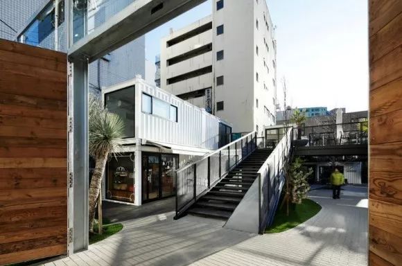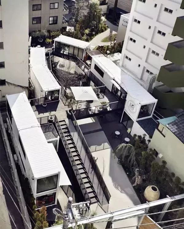 每个空间利用船运集装箱进行商业区域围合、回旋簇拥着庭园步道。