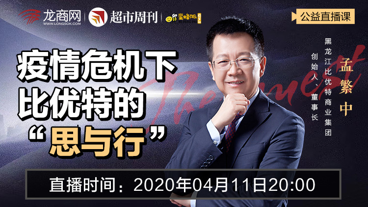 4月11日(周六)晚8:00,龙商网&超市周刊主编高建成特邀黑龙江比优特商业集团创始人、董事长孟繁中就《疫情危机下比优特的“思与行”》展开深度访谈。敬请关注!