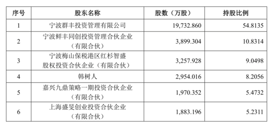 目前,鲜丰水果创始人兼CEO韩树人直接持有8.2%的股份,并通过宁波群丰投资管理有限公司间接持有54.8%的股份;而其妻子杨群伟则通过宁波鲜丰同创投资管理合伙企业间接持有8.6%的股份,二人为实际控制人。