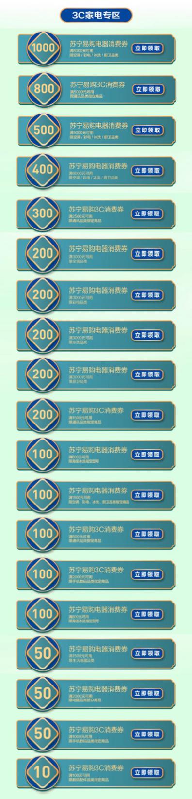 记者获悉,上海苏宁发放的2亿消费券将会以电子券的形式,根据产品类型分为1000元、800元、500元、300元、200元、100元、50元、30元等不同面值,每人最多能领取5000多元。