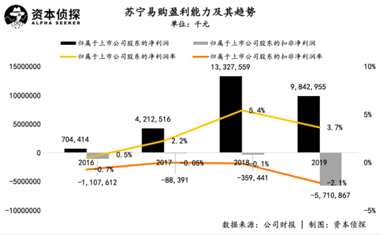 一正一负的背后,是苏宁易购巧妙的资本运作。