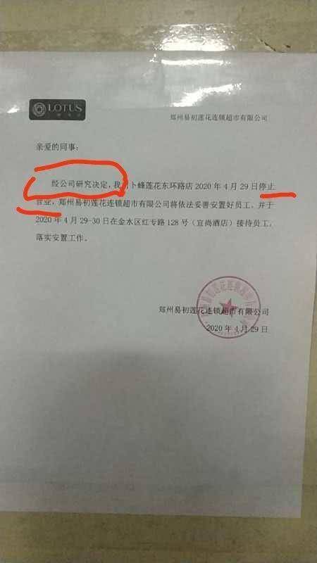 近日,据《河南商报》爆料卜蜂莲花郑州农业路店员工像往日一样上着班,突然来了一批陌生人,要与员工约谈解除劳动合同的相关事宜。面对突如其来的解聘,员工们都懵圈了。 位于农业路的卜蜂莲花门店在郑州经营了15年左右,超市方面称,闭店时间尚未确定。但4...