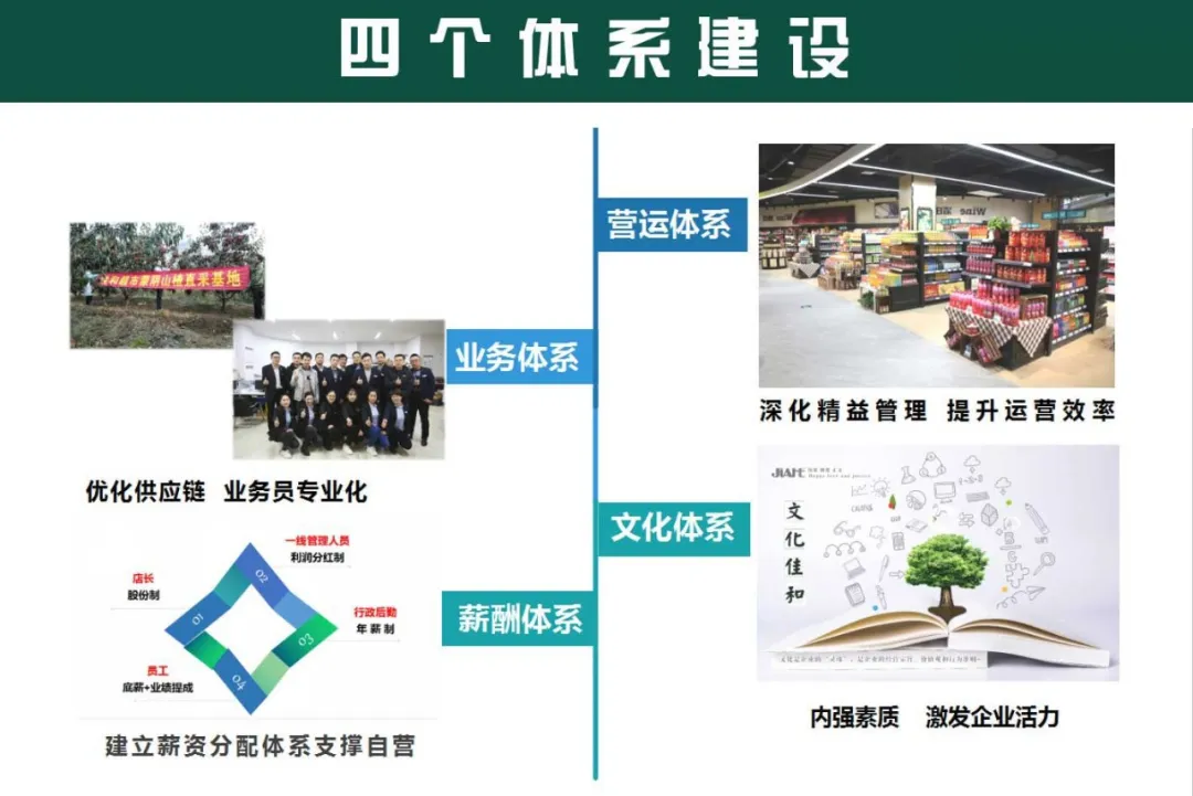 历经14年风风雨雨的佳和商业,由初创到规范、由新生到知名,现已完善四个体系建设,让我们共同见证“立足本县,布局全市”的第二个十年规划。
