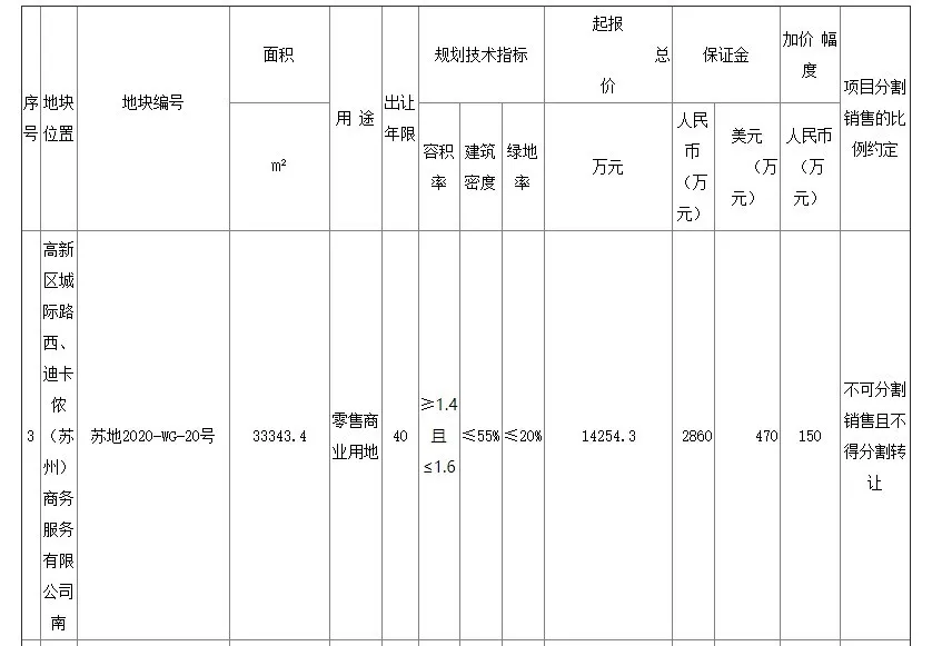 Costco苏州地块指标 来源:苏州市自然资源和规划局官网