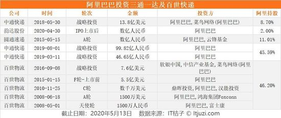 当前,阿里已经通过投资并购的方式“捕获”了“三通一达”。截止到2020年 5月 13日,阿里已经成为百世物流的最大股东,拥有46.2% 的投票权;是申通快递的第一大股东,拥有45.59% 股份;是中通快递的第二大股东,持股为8.7%,拥有2.6% 的投票权;韵达快递的第七大股东,持股2%。