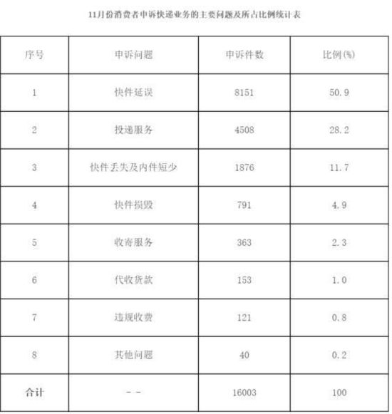 ▲国家邮政局关于2012年11月邮政业消费者申诉情况的通告