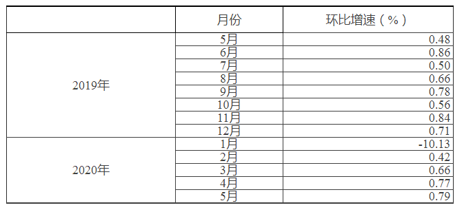 根据季节调整模型自动修正的结果,对2019年5月份以来的社会消费品零售总额环比增速进行修订。修订结果及2020年5月份环比数据如下: