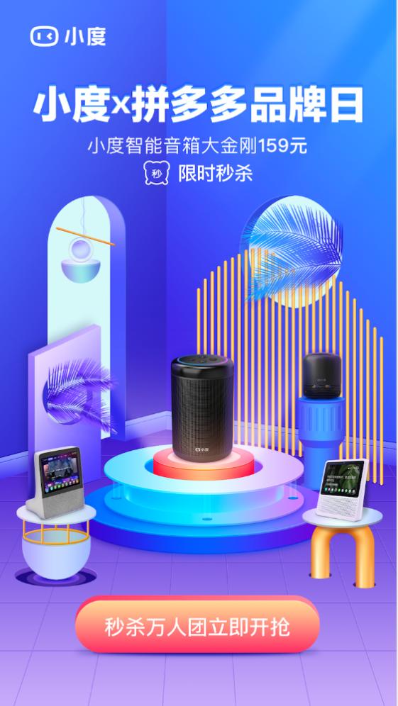 6月29日,拼多多联合小度推出品牌日活动,小度智能音箱旗下100余款产品将参与此次活动。其中,针对小度智能音箱红外版等部分产品推出半价优惠,智能音箱产品最高降价超65%。用户通过拼多多App首页限时秒杀万人团入口即可进入相关页面。此外,在小度品牌日活...