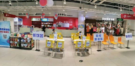 7月6日晚上,家乐福门店内,志愿者团队早已布置好了“高考加油站”,即将开放的休息区和餐饮区,不仅可为考生及家长提供避雨、遮阳等便利,同时也方便大家轻松就餐、稍事休息,以期减少来回奔波、舟车劳顿,此外门店还将提供饮用水、手机充电等贴心服务。家乐福希望借“高考加油站”给奋力拼搏的考生带去了切实的加油和鼓励,并有效缓解送考家长的紧张情绪。