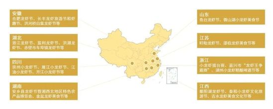 酒香有时也怕巷子深,许多地方政府还积极为小龙虾打造行业交流平台和节庆文化。早在2001年7月盱眙县就举办了第一届龙虾节;而后潜江又将小龙虾节进行了改良,将旅游、周边产品贩卖等盈利方式杂糅在一起,成为拉动消费、融合产业、促进增收的重要手段。