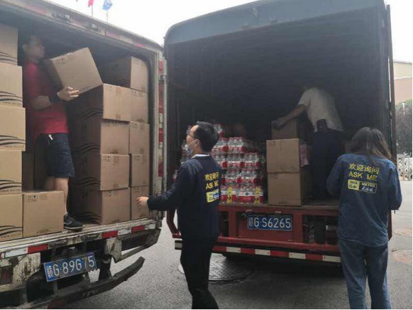 物美麦德龙员工准备物资,送往抗洪一线