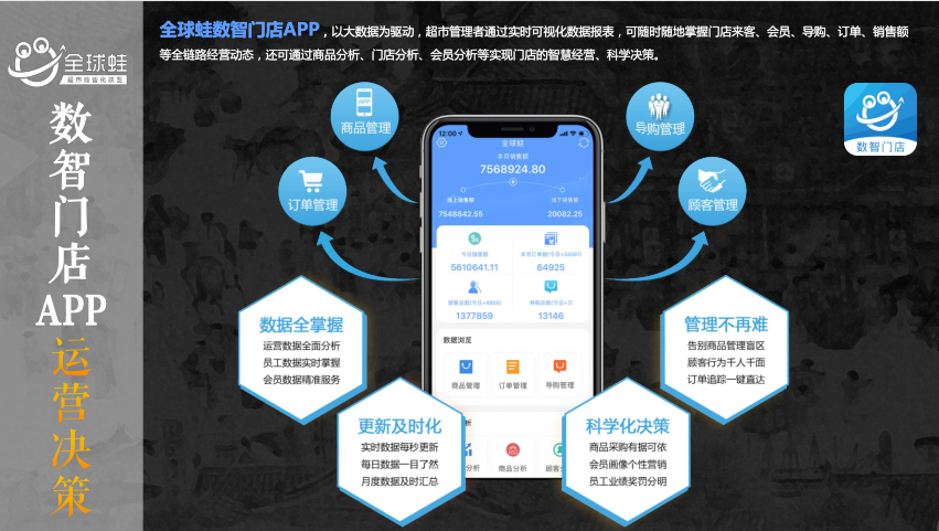 最后,通过为区域超市定制专属APP/小程序,实现线上线下全渠道运营,再加上我之前介绍的多种全球蛙产品,都是来帮助大家实现数智化升级的,真正让“场无界”。