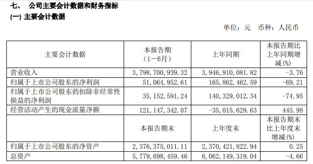 营收微跌3.76%、净利大跌69.21%